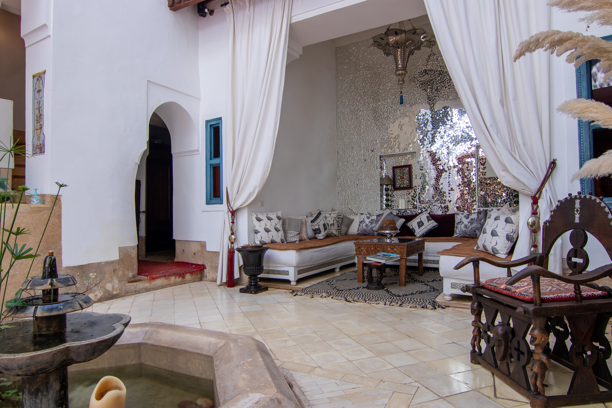 Notre riad conjugue avec finesse l’élégance de l’architecture traditionnelle — zelliges délicats, plâtres sculptés et bois de cèdre — avec le confort d'un luxe discret et contemporain. Chaque chambre a été pensée comme un sanctuaire, offrant une atmosphère unique où chaque détail raconte une histoire.