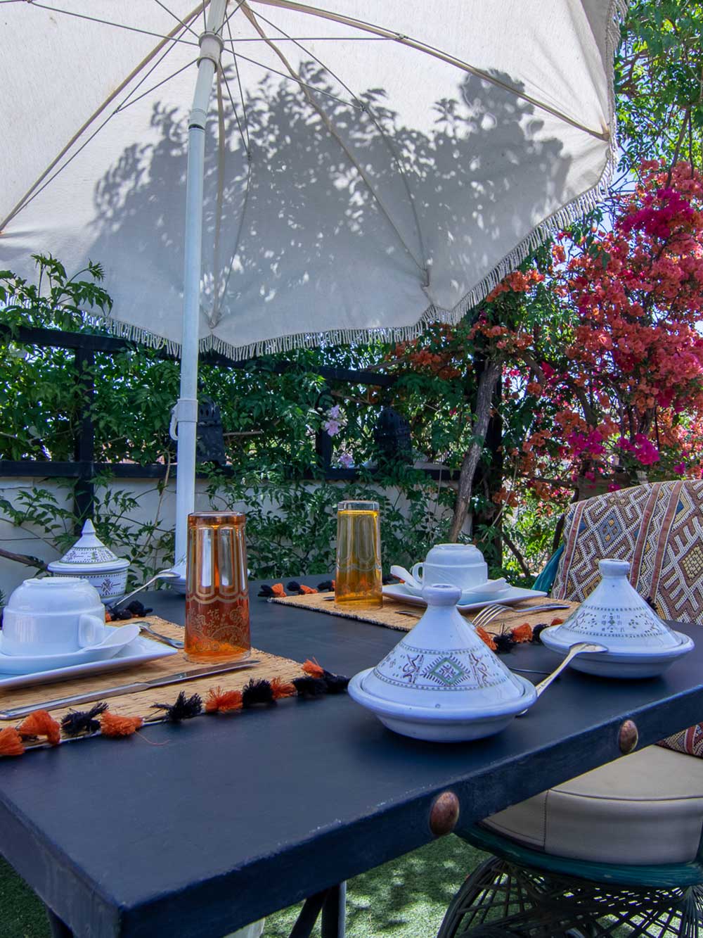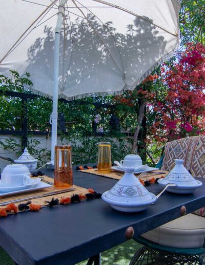 Des tajines mijotés pendant des heures aux salades de saison parfumées à la fleur d'oranger, chaque plat est une célébration des saveurs de l'Atlas. Que ce soit pour un dîner aux chandelles dans le patio ou un déjeuner ensoleillé sur la terrasse, laissez-vous séduire par une escale gourmande où le temps semble s'être arrêté.